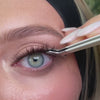 Ensure lashes and eye area are clean and oil-free. Gently lift clusters from the tray with tweezers.